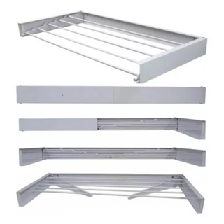 100 cm Varal de Parede Mágico Até 20Kg Retrátil Dobrável Todo de Alumínio Grande C/ 5 Varetas Branco