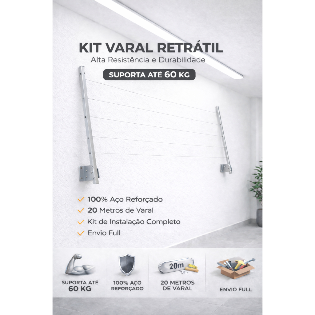 Comprar na ShopeeVaral Magico Retrátil Parede 82 cm 5 varetas Branco