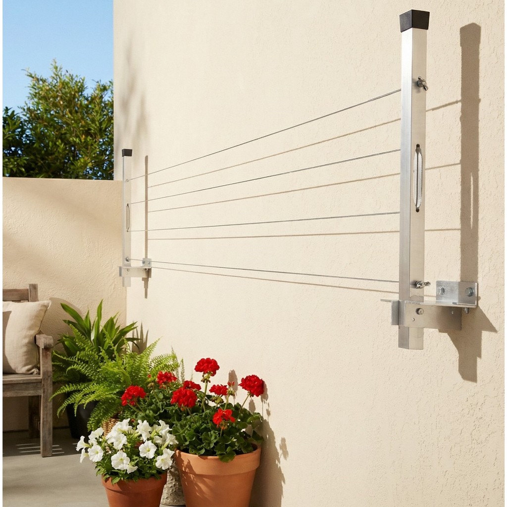 Comprar na ShopeeVaral de Roupa de Parede Retrátil de alumínio para Sacada Até 60 kg - PRETO