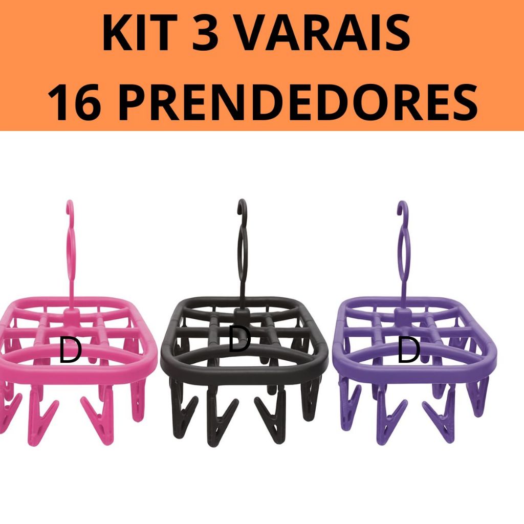 Kit 3 Varais Calcinha Cueca Meias Com 16 prendedores Cores Sortidas