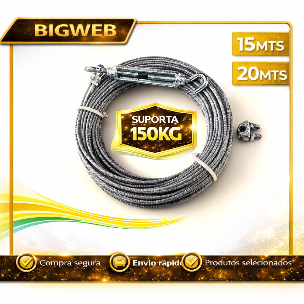 Comprar na ShopeeCabo de Aço Revestido 15M ou 20M 150kg Para Varal, Sacada, Guarda corpo, Parapeito, Corrimão
