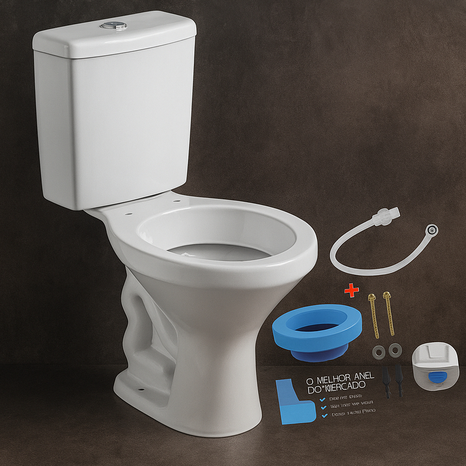 Kit Vaso Bacia Com Caixa Acoplada Branco Araxá Com Anel Vedação e Parafuso + Engate