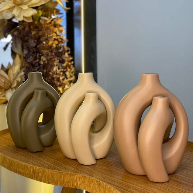 Comprar na ShopeeKit 3 Vasos Decoraçõa Sala | Textura Minimalista + Suportes Elegantes