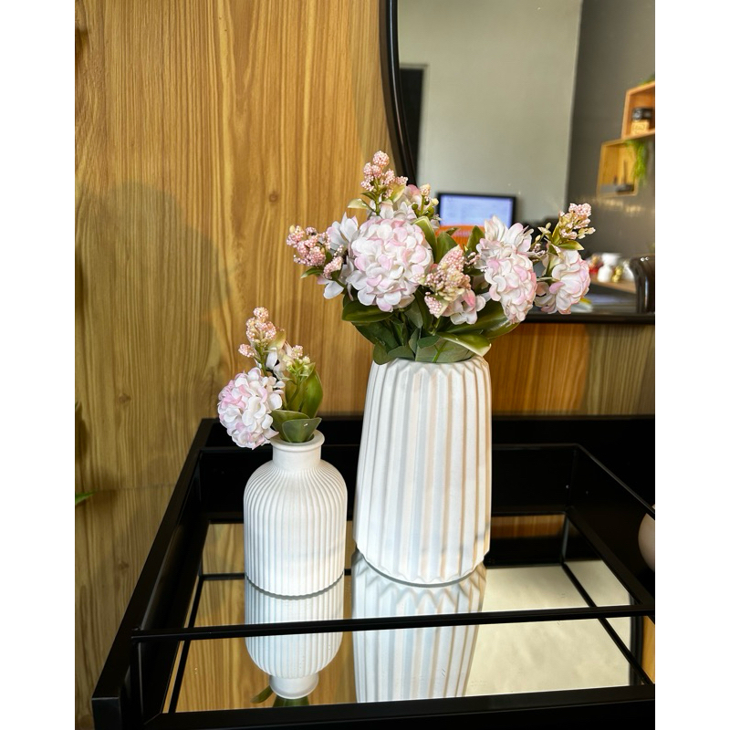 Comprar na ShopeeKit Elegance, dois vasos de gesso canelados, com buquê de flores artificiais
