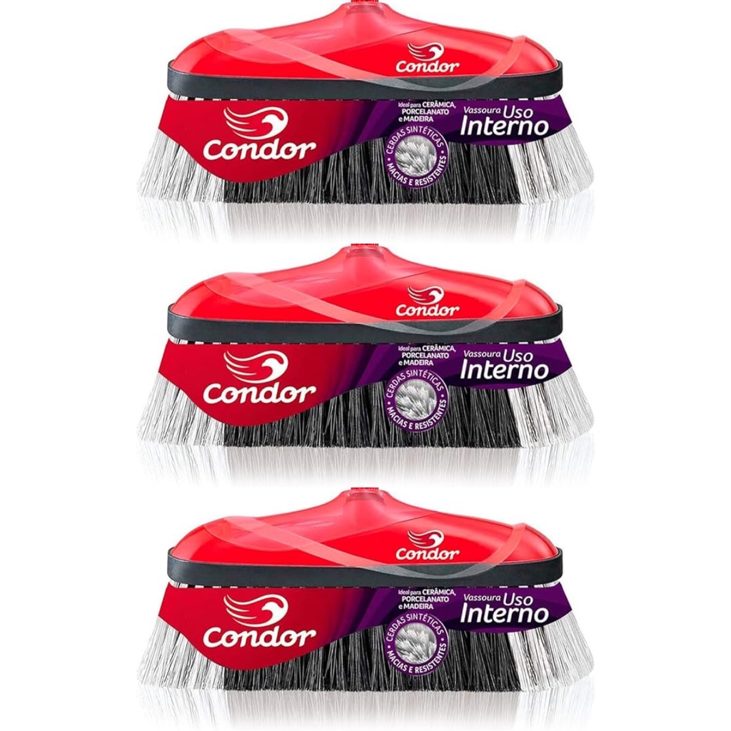 Comprar na ShopeeKit 3 Vassouras Cerdas macias uso Interno Varre Muito Condor