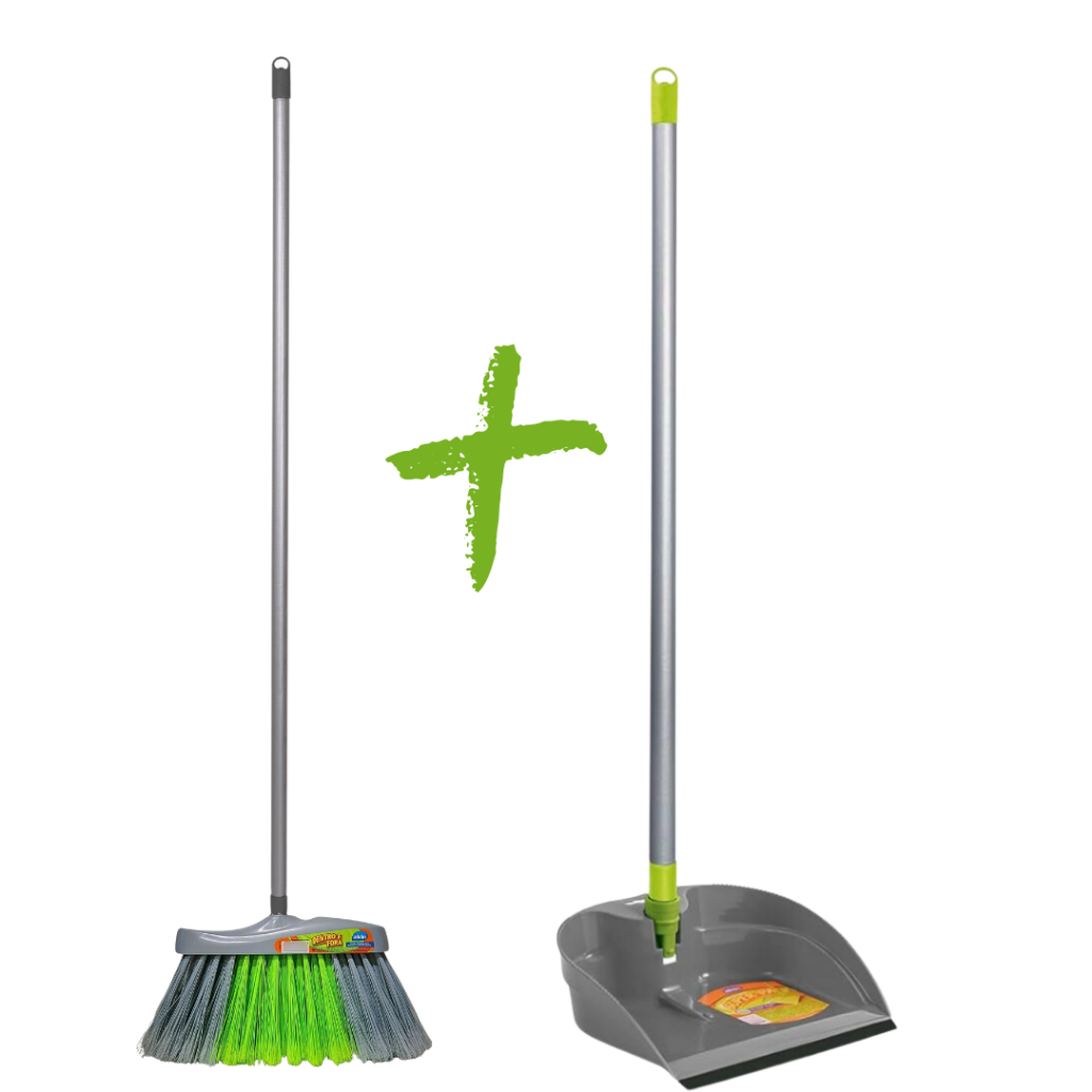 Pá com Cabo Dobrável + Vassoura de Lixo Premium Alklin