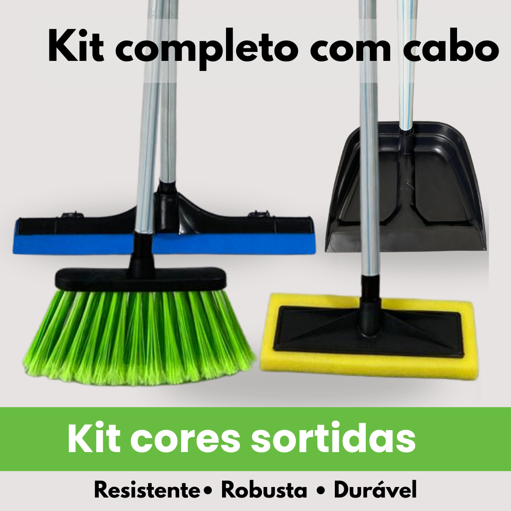 Comprar na ShopeeKit Limpeza 4 Peças Cores sortidas com Cabo Vassoura + Rodo + Pá de Lixo + Limpa Azulejo
