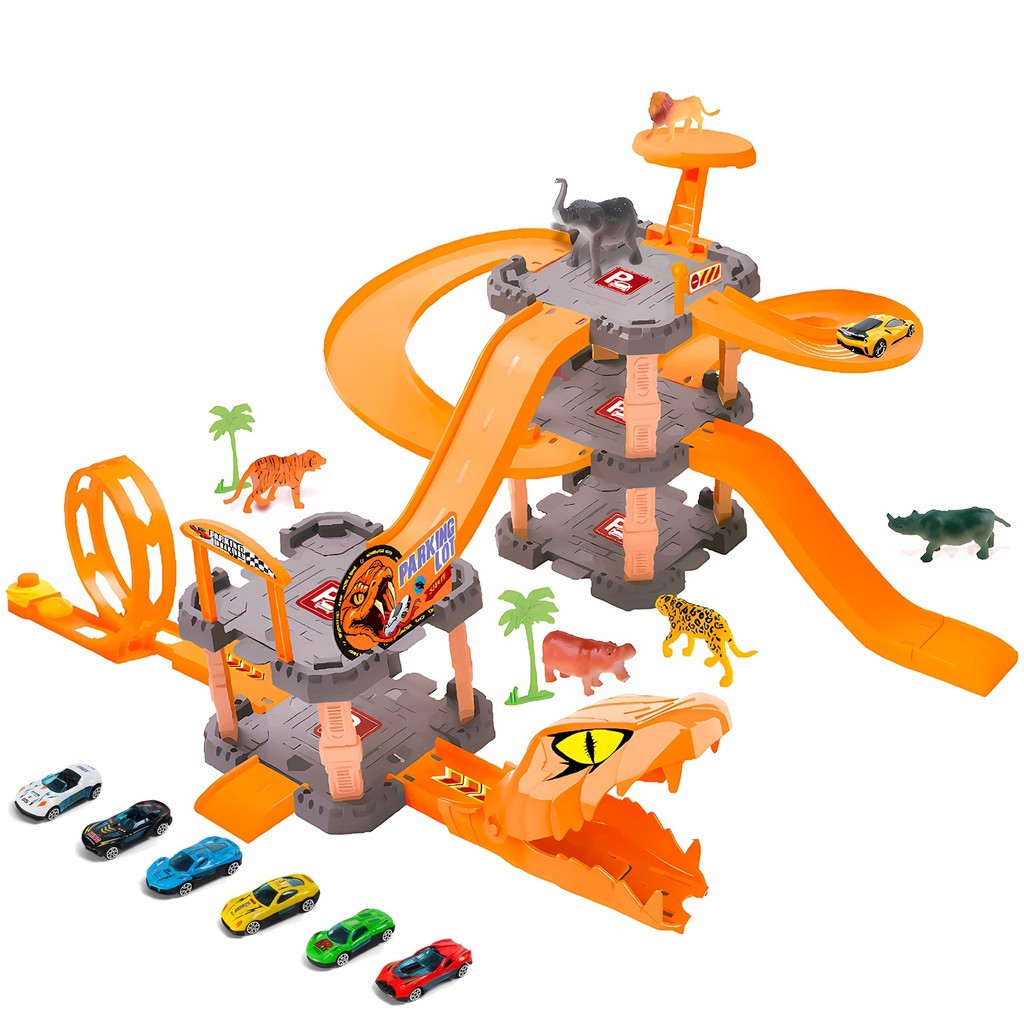 Comprar na ShopeeBrinquedo Pista Serpente Com Looping Lançador Com 6 Carrinhos E Acessórios Animais Dm Toys