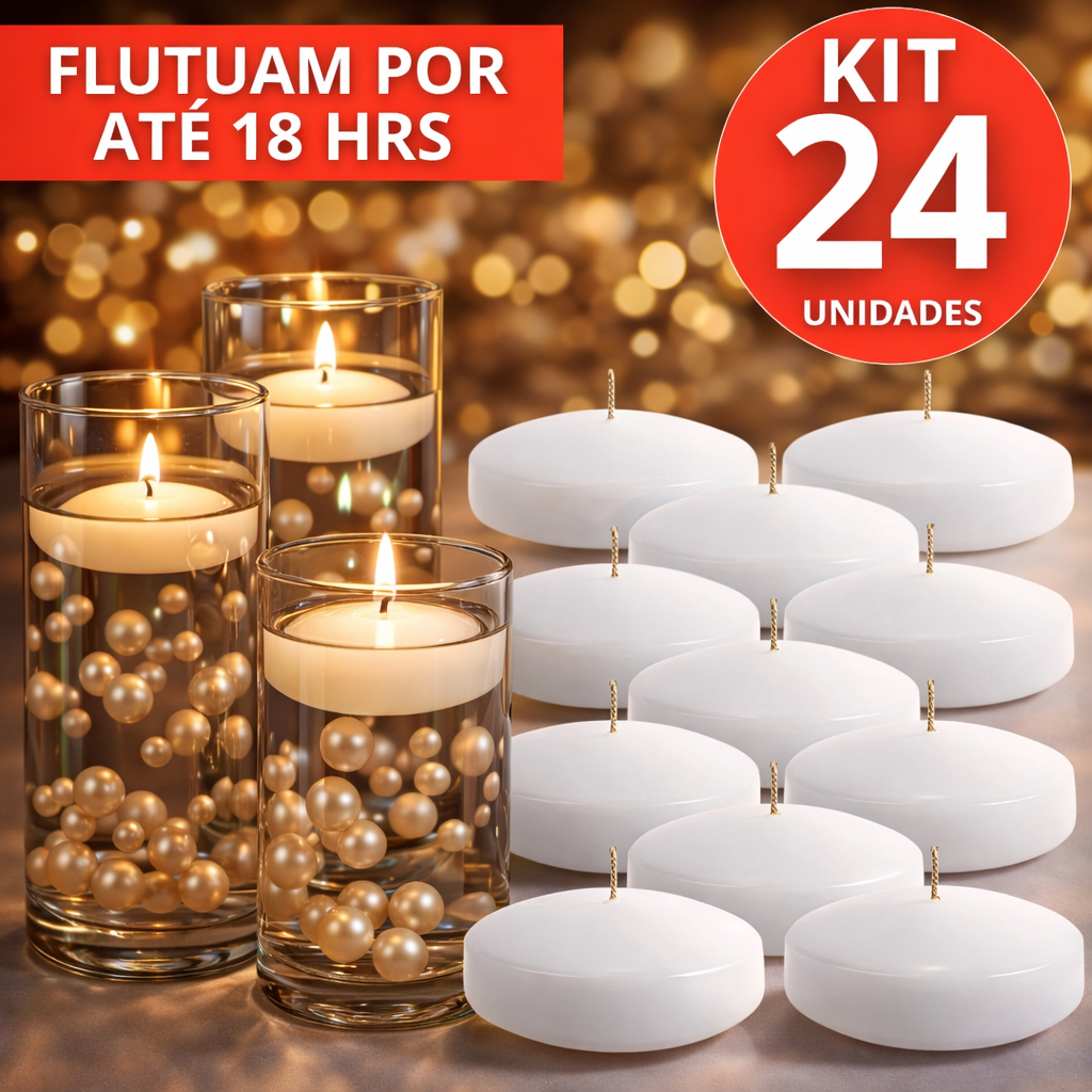 24 VELAS FLUTUANTE BRANCA DURAÇÃO 18 HR DECORAÇÃO DECORATIVA CASAMENTO FESTAS PISCINA FLUTUAM