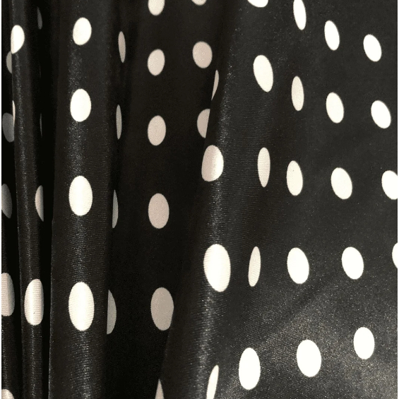 Comprar na ShopeeTecido Cetim Estampado Bola Branca e Fundo Preto Atacado Varejo