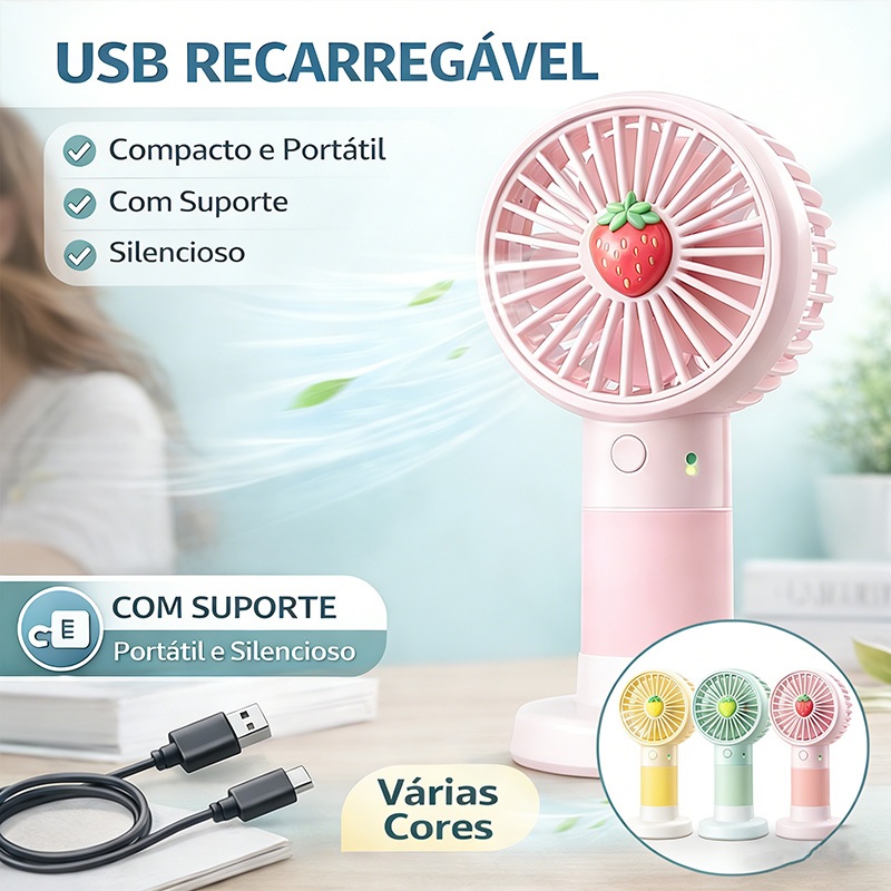 Comprar na ShopeeMini Ventilador Portátil Frutas Fofas com Suporte para Celular USB Recarregável Frete Grátis