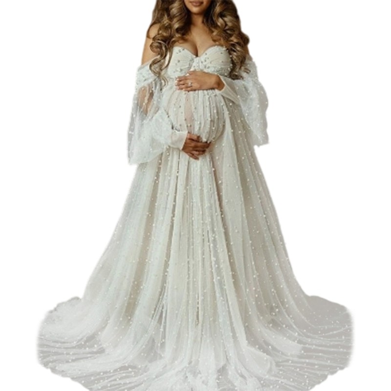 * Vestido Ombro Fotográfico Para Grávidas Tecido Respirável Bainha Longa