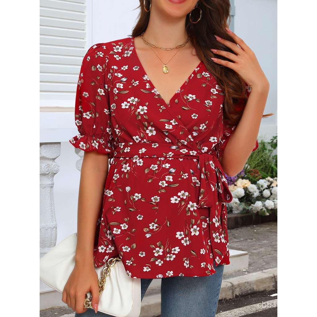 R Casual Listrado Maternidade Decote V Botão Para Baixo Camisa Babydoll Plissada