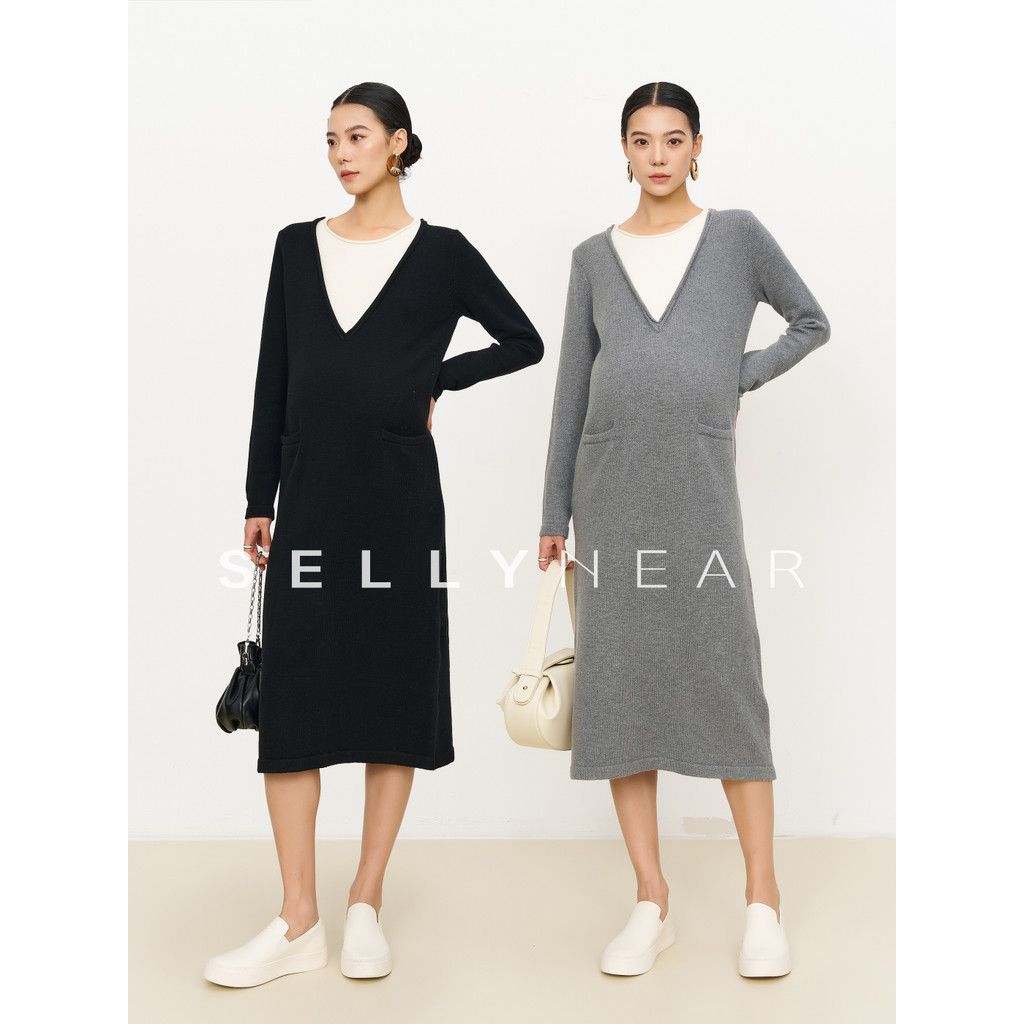 Vestido Longo Linho Social Gestante Bolso Lateral Conforto De Amamentar