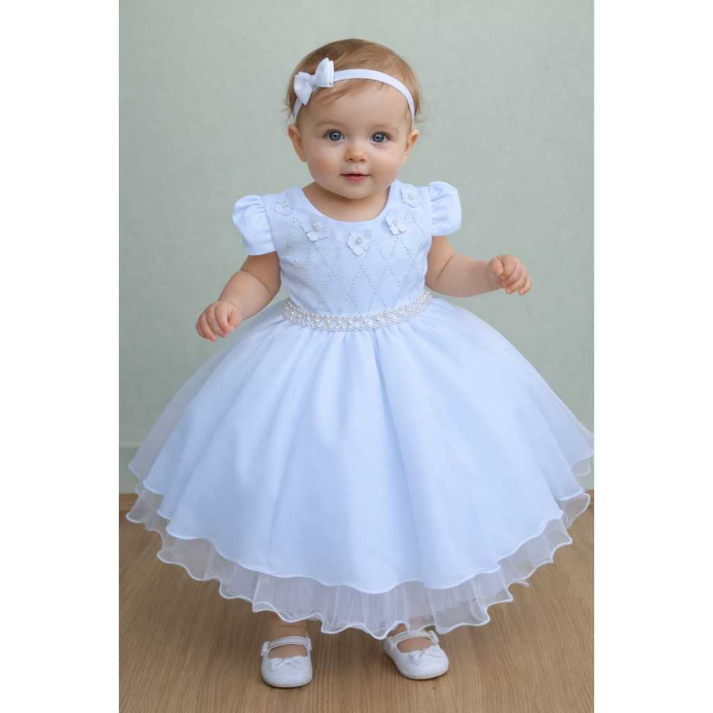 Comprar na ShopeeVestido infantil batizado bebe branco recem nascido a 1 ano daminha