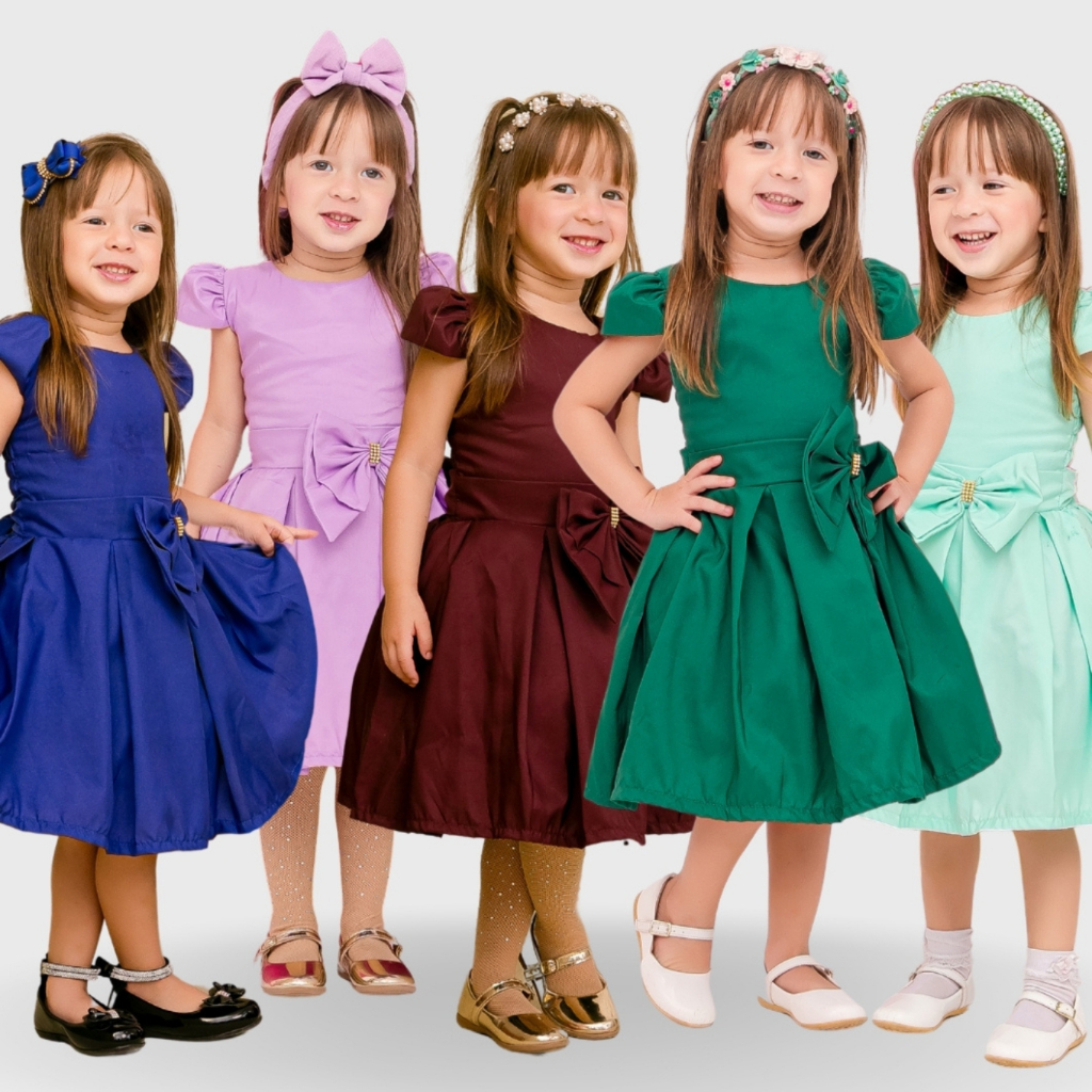 Comprar na Shopeevestido infantil menina cores lisas lavanda verde azul vinho marsala bordô tamanho 1 2 4 6 8 10 anos