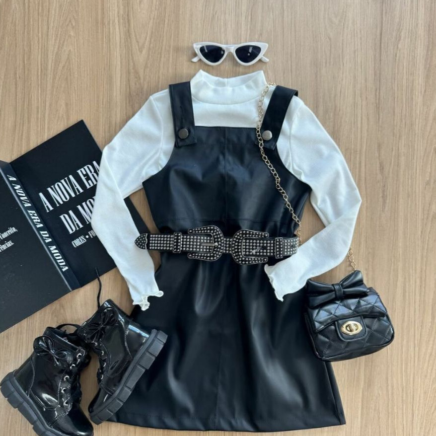 Jardineira Salopete Infantil De Couro Para Meninas Estilo Blogueirinha