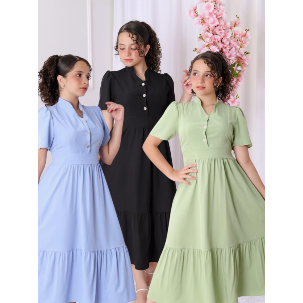Comprar na ShopeeVestido Infantil Juvenil Midi Crepinho Elegante Botões Romântico Blogueirinha Rodado Tam 10 12 14 16