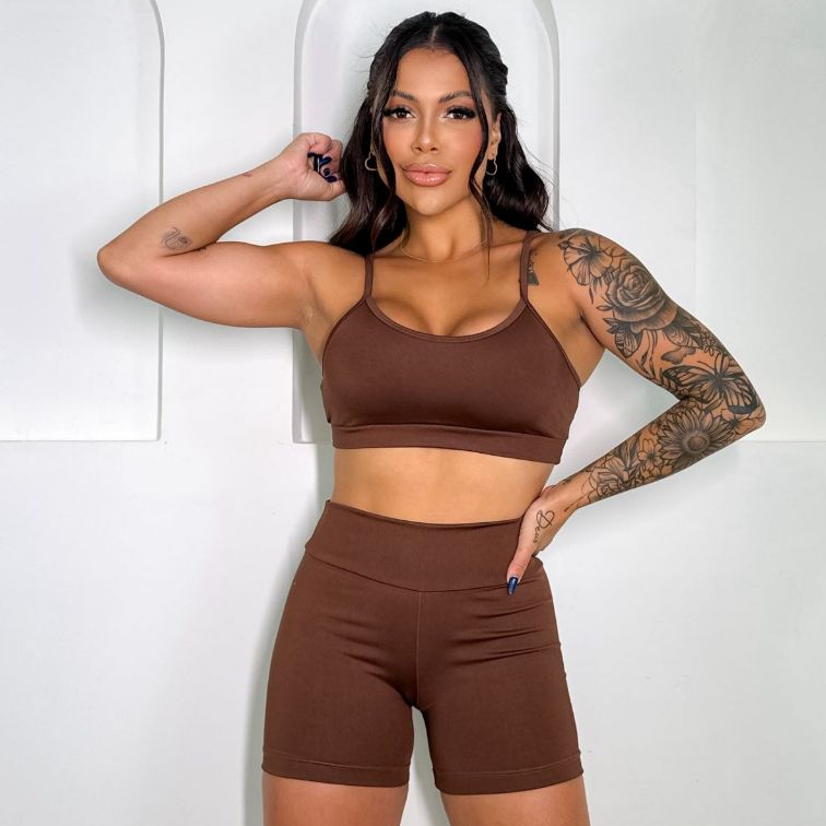 Comprar na ShopeeConjunto Fitness Bicolor Feminino Short e Top Bojo Removível Academia Roupa De Malhar Suplex Premium