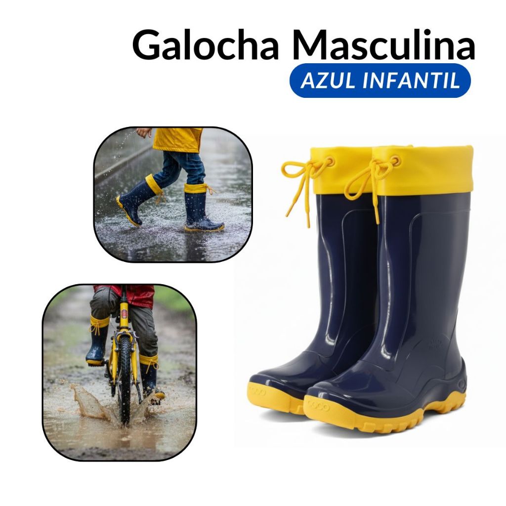 Comprar na ShopeeGalocha Bota de Chuva Cano Alto Flash Infantil Menino Juvenil Leve Moderna Confortável Estilosa