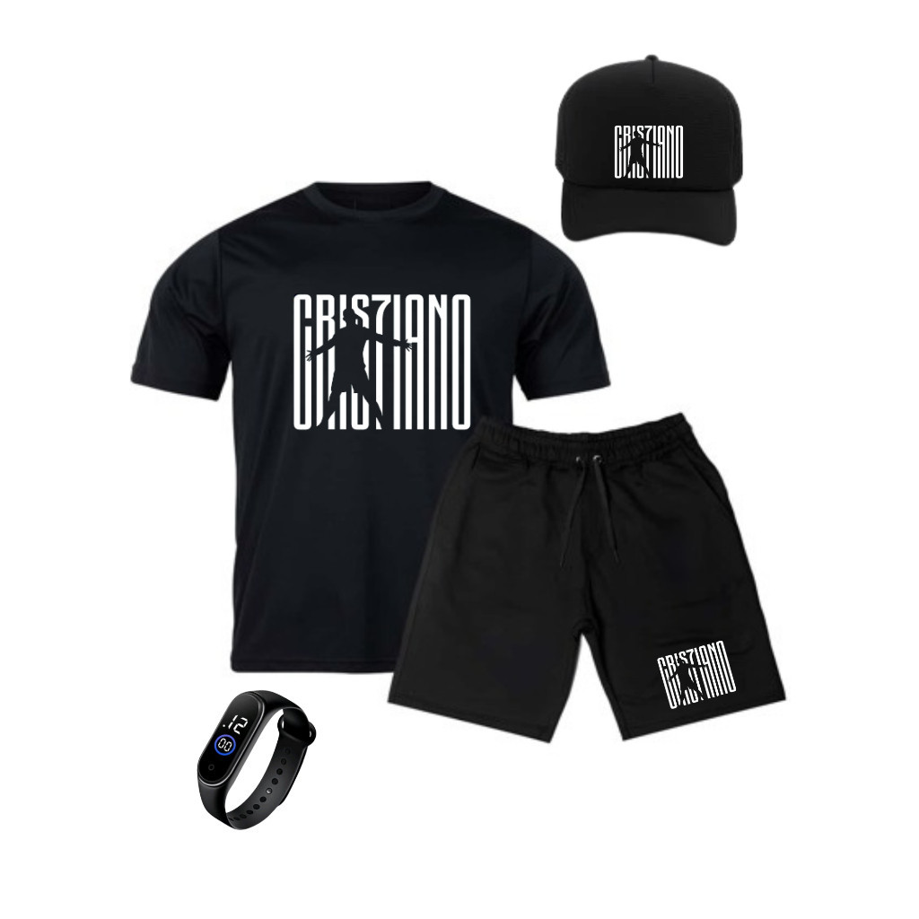 Comprar na ShopeeCONJUNTO INFANTIL CAMISA E BERMUDA CR7 CRISTIANO + BONE E RELOGIO