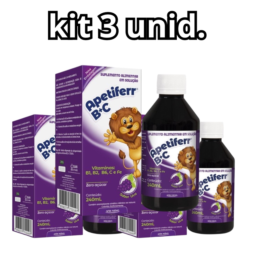 Comprar na ShopeeKIT 3 unid Apetiferr B+C Sabor Uva Zero Açúcar 240ml - Arte Nativa