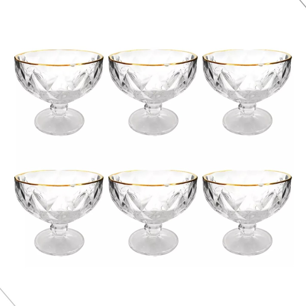 Comprar na ShopeeJogo 6 Taças Diamante Bico De Jaca Diamond Sobremesa 310ml Fio de Ouro ESOLHA SEU MODELO