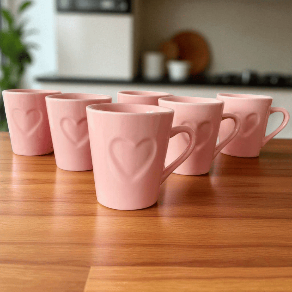 Comprar na ShopeeKit 6 Xícaras Coração em Relevo 120ml – Porcelana Charmosa Presente Cesta Café Chá