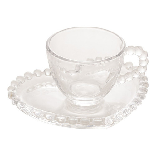 Comprar na ShopeeJogo 4 Xícaras 85ml Café de Cristal Com Pires Coração Pearl Wolff