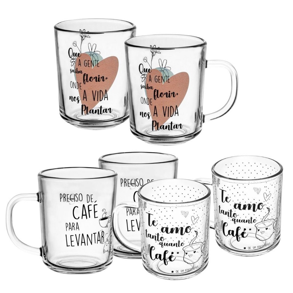 Comprar na ShopeeJogo Xícara Café Chá De Vidro Com Alça 200ml 6 Peças Caneca