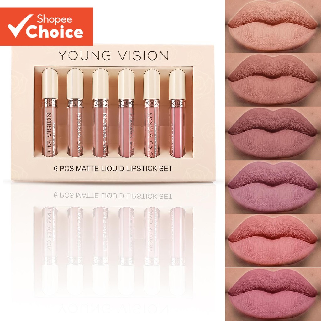6 Bastões Baton Batom Rosa Mate Brilho Labial Gloss Veludo Conjunto Batom Nu Cor Batom Não Fácil de Molhar Copo | ShopRank