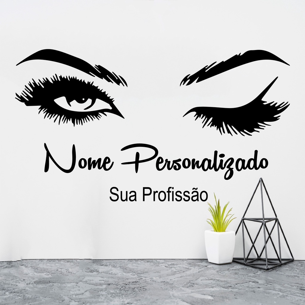 Adesivo Parede Profissões Nome Personalizado Cílios 55cm de largura - ENVIAR O NOME E PROFISSÃO APÓS A COMPRA!!! 02 | ShopRank