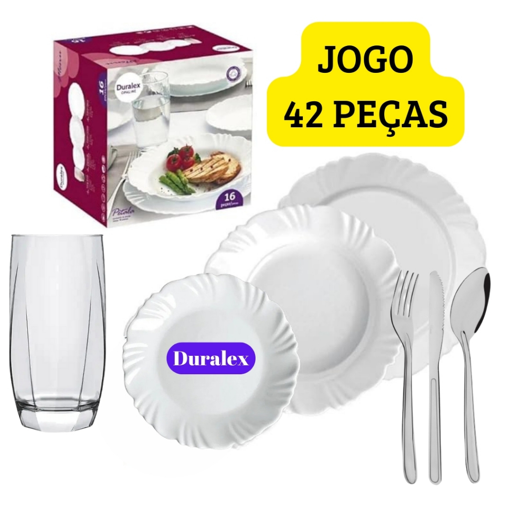 Aparelho Jantar 42 Peças Jantar C/ 06 Prato Vidro Duralex Fundo Petala+06 Raso+06 Sobremesa+06 Copos+18 Talheres Oriente | ShopRank