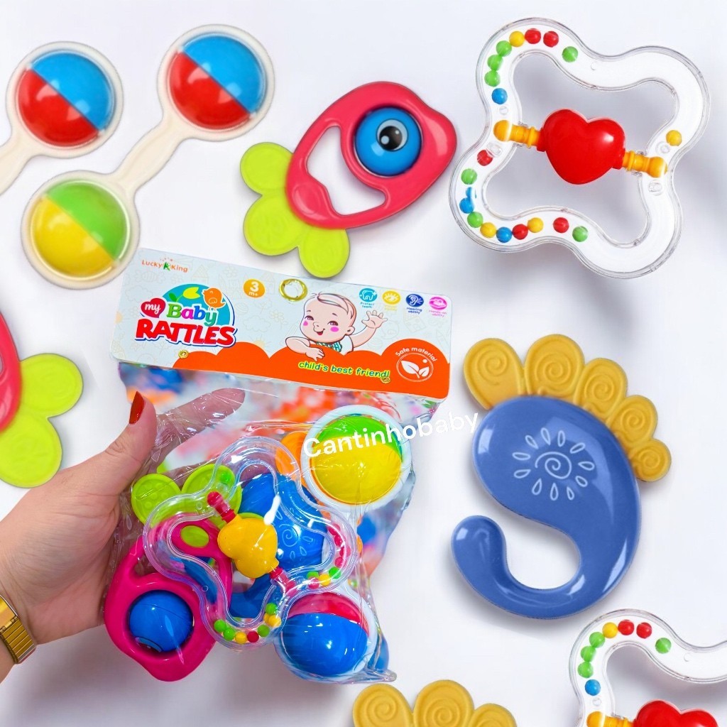 Brinquedos Para Bebê Kit com 4 pçs Chocalho e Mordedor Macio Colorido | ShopRank