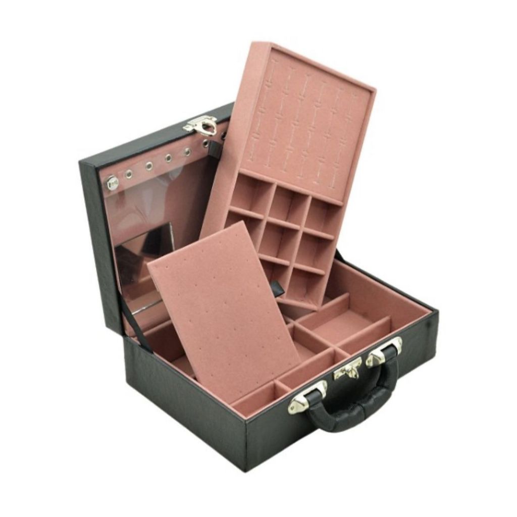 Caixa Maleta Estojo Porta Joias Bijuterias Dupla Media com espelho - Preta Rosê | ShopRank