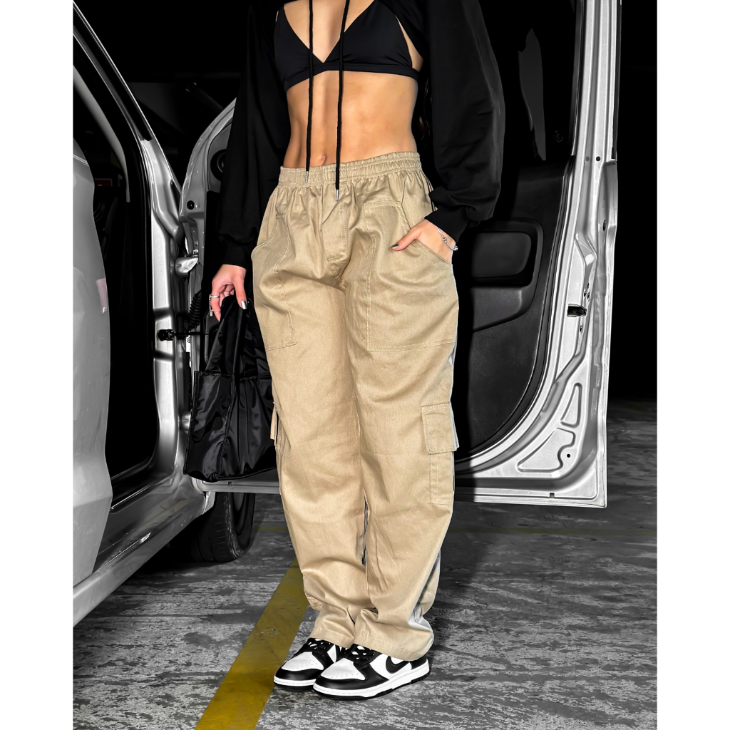 Calça Cargo Sarja Caqui Preta Skate (Unissex) ENVIO IMEDIATO Costura Reforçada Dupla Streetwear Blogueira | ShopRank