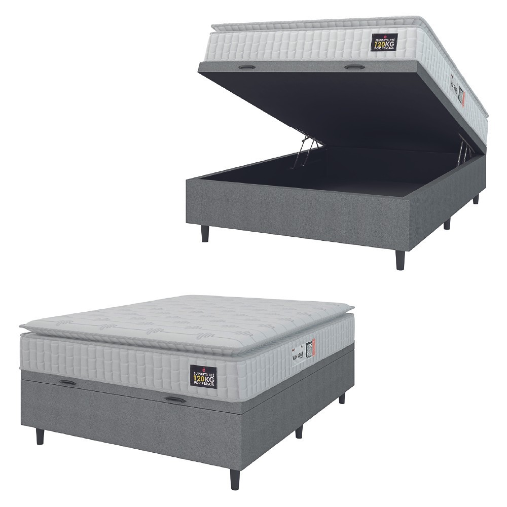 Cama Box Baú Colchão Casal Espuma D33 Vangogh Pillow Top 138x188x70cm Branco / Cinza Hellen | ShopRank