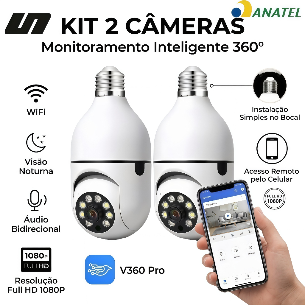 Câmera Lâmpada Segurança Wi-Fi 360 Infravermelho Visão Noturna Prova D'água Sem Fio 8177 | ShopRank