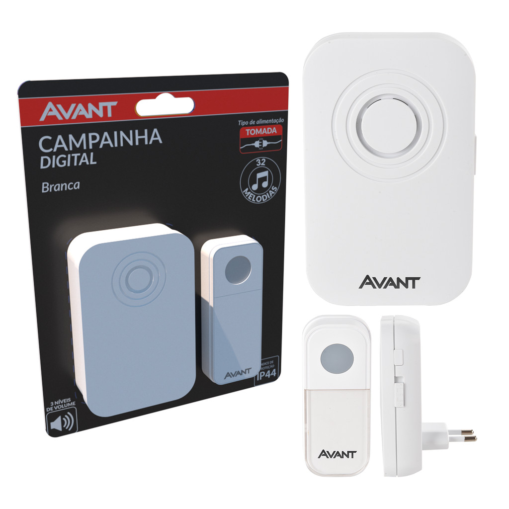 Campainha Digital Sem Fio Tomada 110v/220v Ip44 Branco Avant | ShopRank