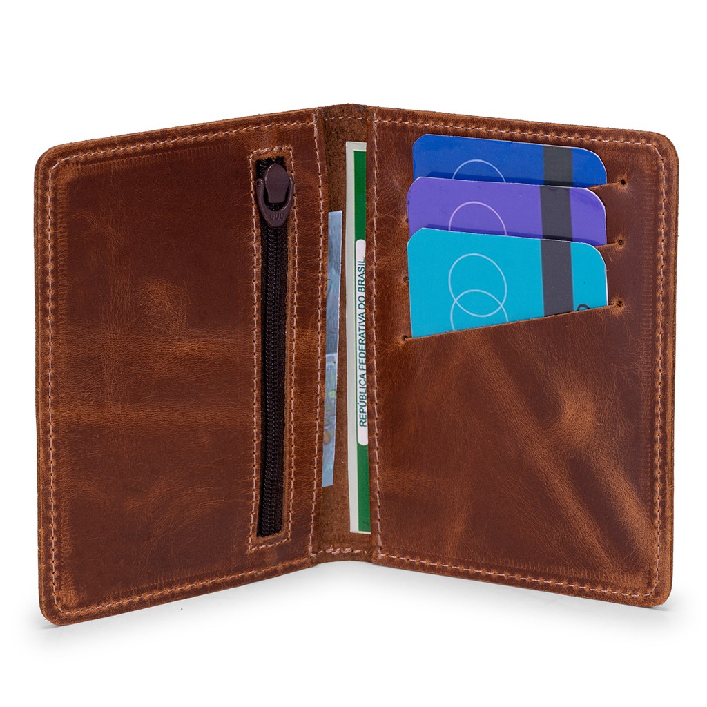 Carteira Couro Legitimo Cartões,porta Moedas + Zíper Cabe RG | ShopRank