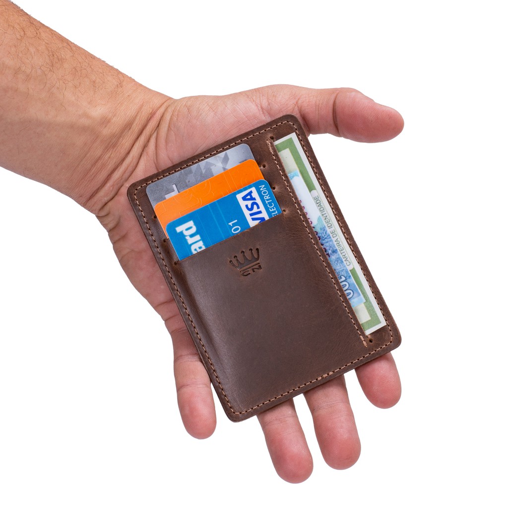 Carteira Masculina Couro Legitimo Porta Cartão Slim 5 Compartimento Cabe Rg | ShopRank