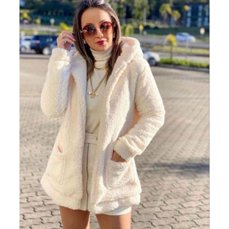 Casaco Inverno Feminino Max TEDDY (FORRADO) Tecido Peludo Manga Longa. | ShopRank