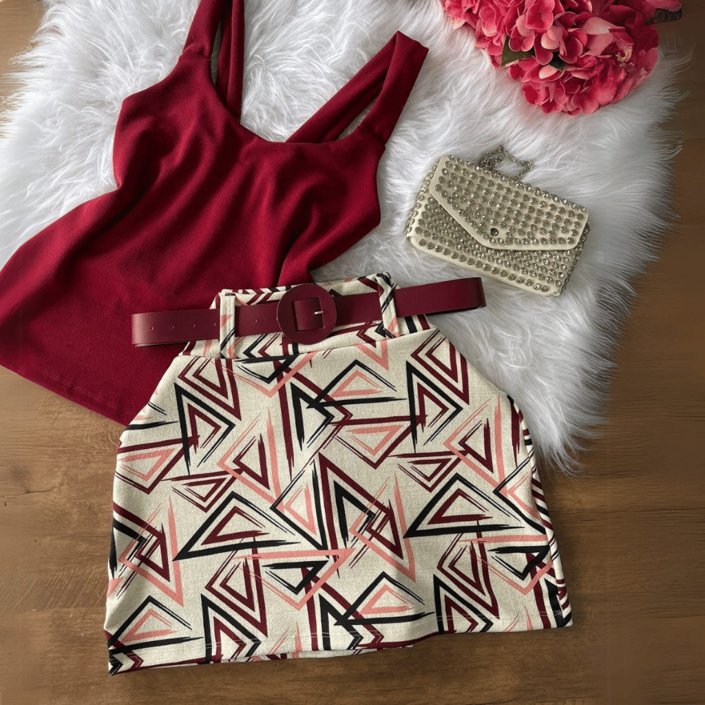 Conjunto Blusa Regata e Short Saia com Cinto Plus Size Conjuntinho Feminino