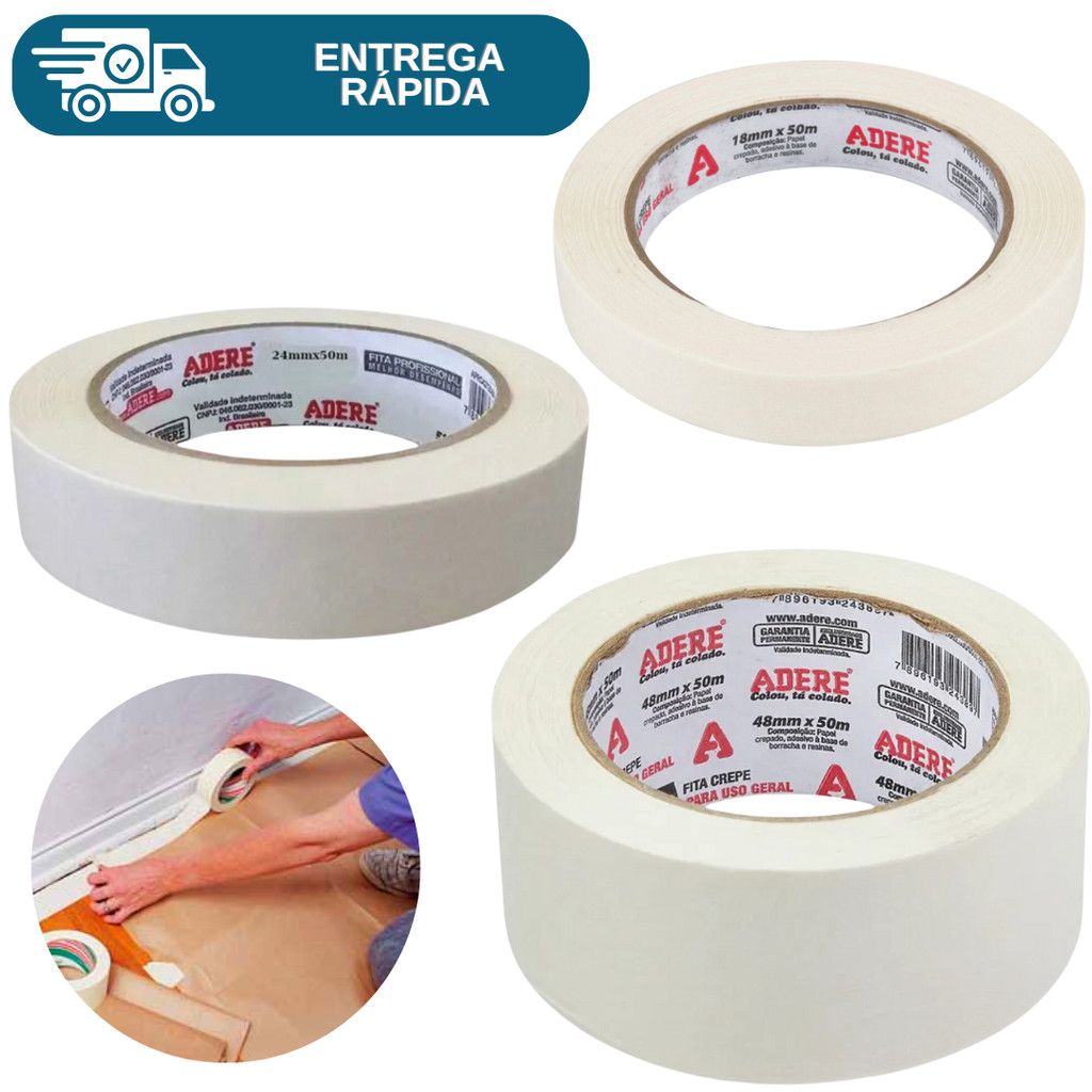 Fita Crepe Uso Geral Adesiva Branca 50 Metros Adere 423 Marcação Artes Paredes 18mm 24mm 48mm | ShopRank