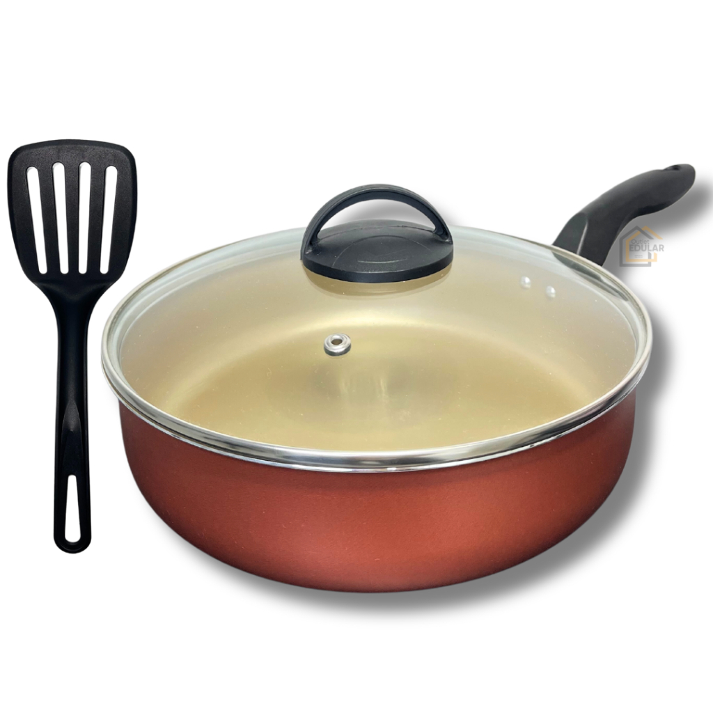 Frigideira 24 cm Grande Alta Funda Antiaderente Teflon com Tampa de Vidro Cor Cereja Gold | ShopRank