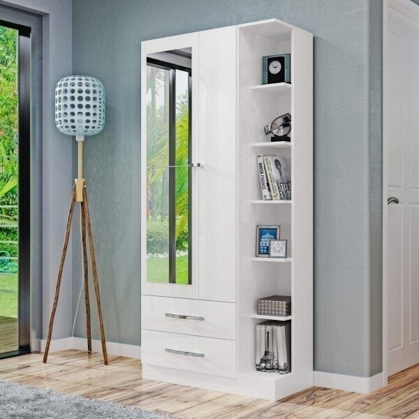 Guarda Roupa Solteiro 1 Espelho 2 Portas 2 Gavetas e Prateleiras Moju Branco | ShopRank