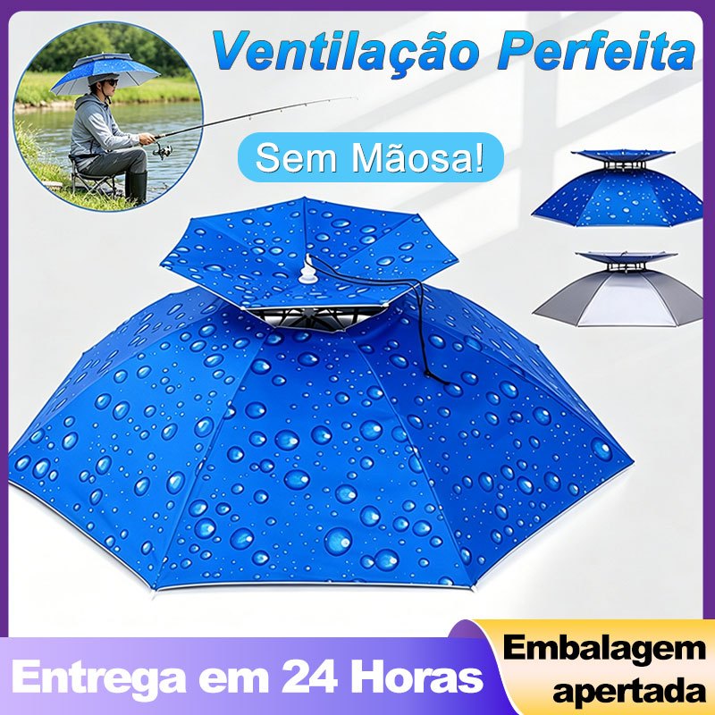 Guarda Sol Chapéu de Cabeça 77cm Duplo Ajustável para Pesca, Trilha e Acampamento Impermeável | ShopRank