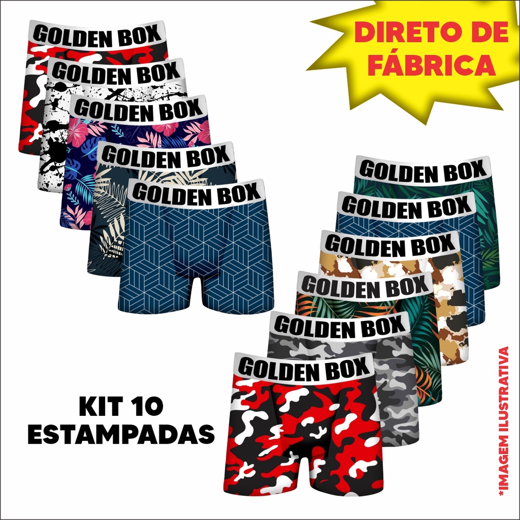 Kit 10 - Cueca Box Estampada Golden Micro Dry Boxer | ShopRank