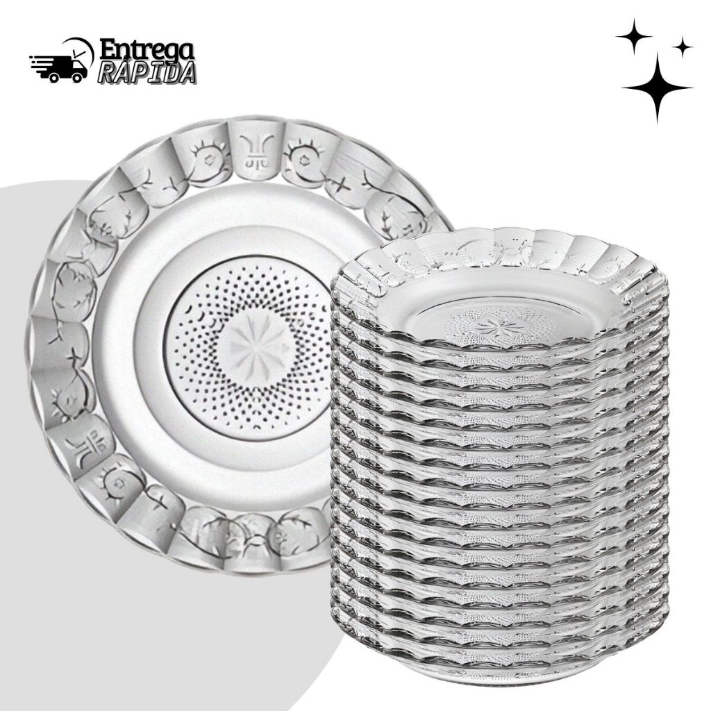 Kit 18 Pratos Fundos de Vidro 21,5cm | Design Egípcio em Alto Relevo | Elegante e Resistente | ShopRank