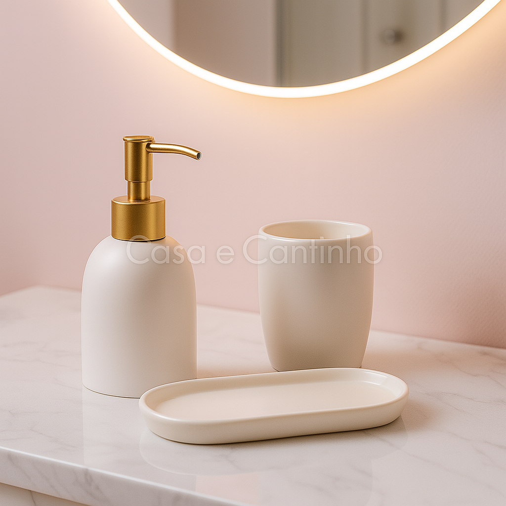 Kit 3 Peças de Banheiro Conjunto Dispenser Porta Sabonete Liquido escova de Dente
